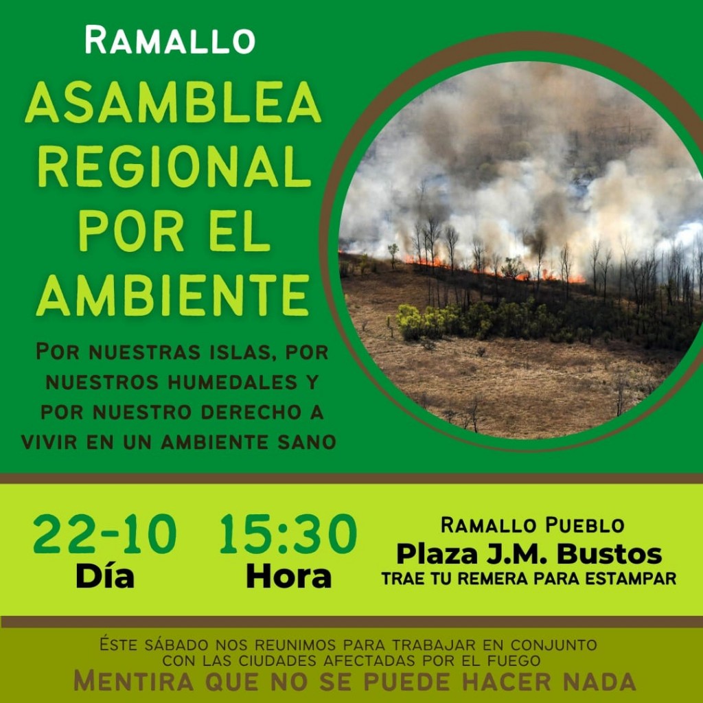 Este sábado 22 a las 15.30hs, nos juntamos en la Plaza José María Bustos en *Asamblea Regional por el Ambiente.*