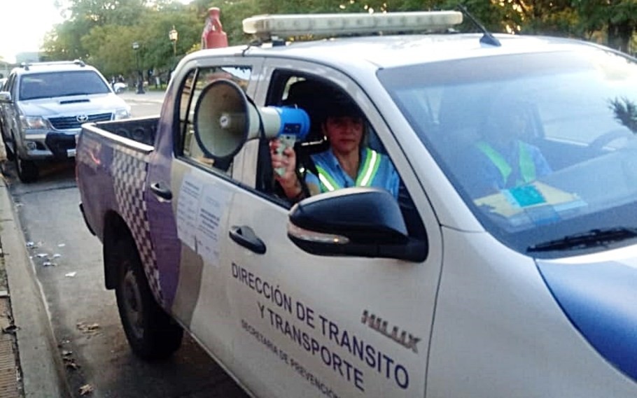 Como parte de estas medidas, dos móviles (uno de Defensa Civil y otro de la Dirección de Tránsito), se encuentran desde el martes recorriendo las calles de la ciudad con un megáfono mencionando a través del cual se da un mensaje de concientización y se hace referencia a la importancia de permanecer en sus hogares y evitar los espacios públicos.